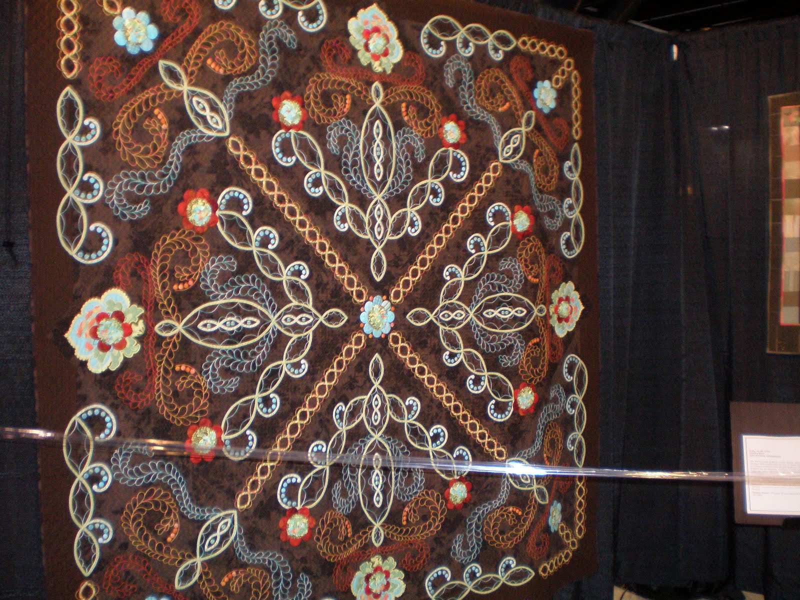 Check the winners list at Quilts, Inc. Incredible! The white area in the sashing is the white glove holding the quilt up for me.